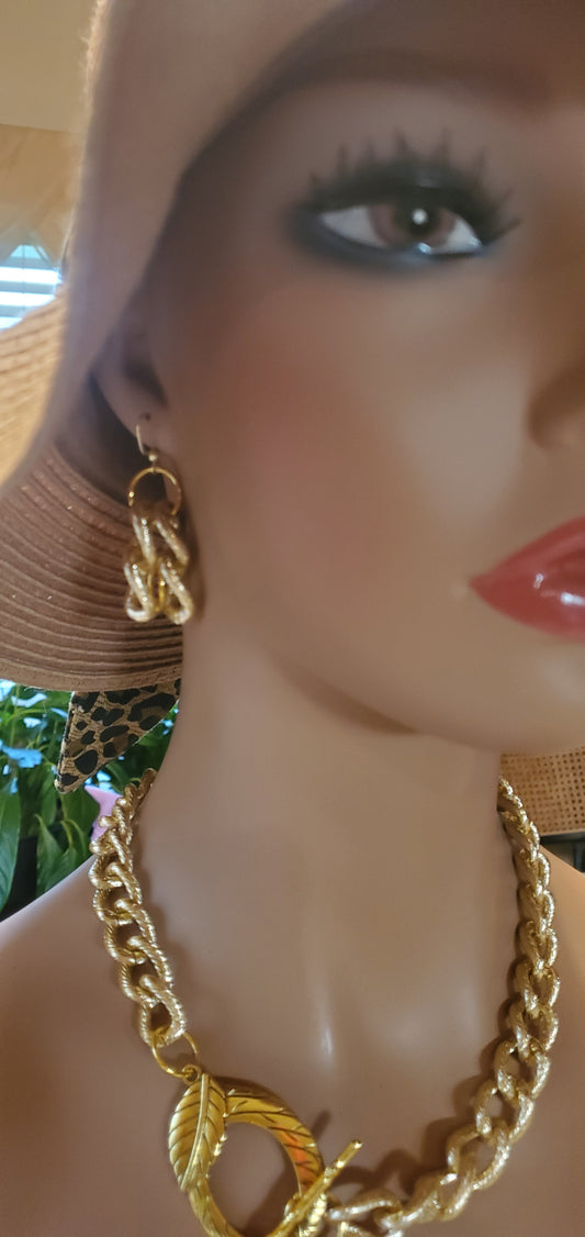 Thick Classy Gold Link Chain with Elegant Toggle Clasp and Earring Set