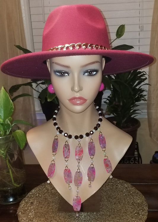 Reversible Fuchsia w/Purple & Soft Mauve Hues/Fuchsia Necklace Set
