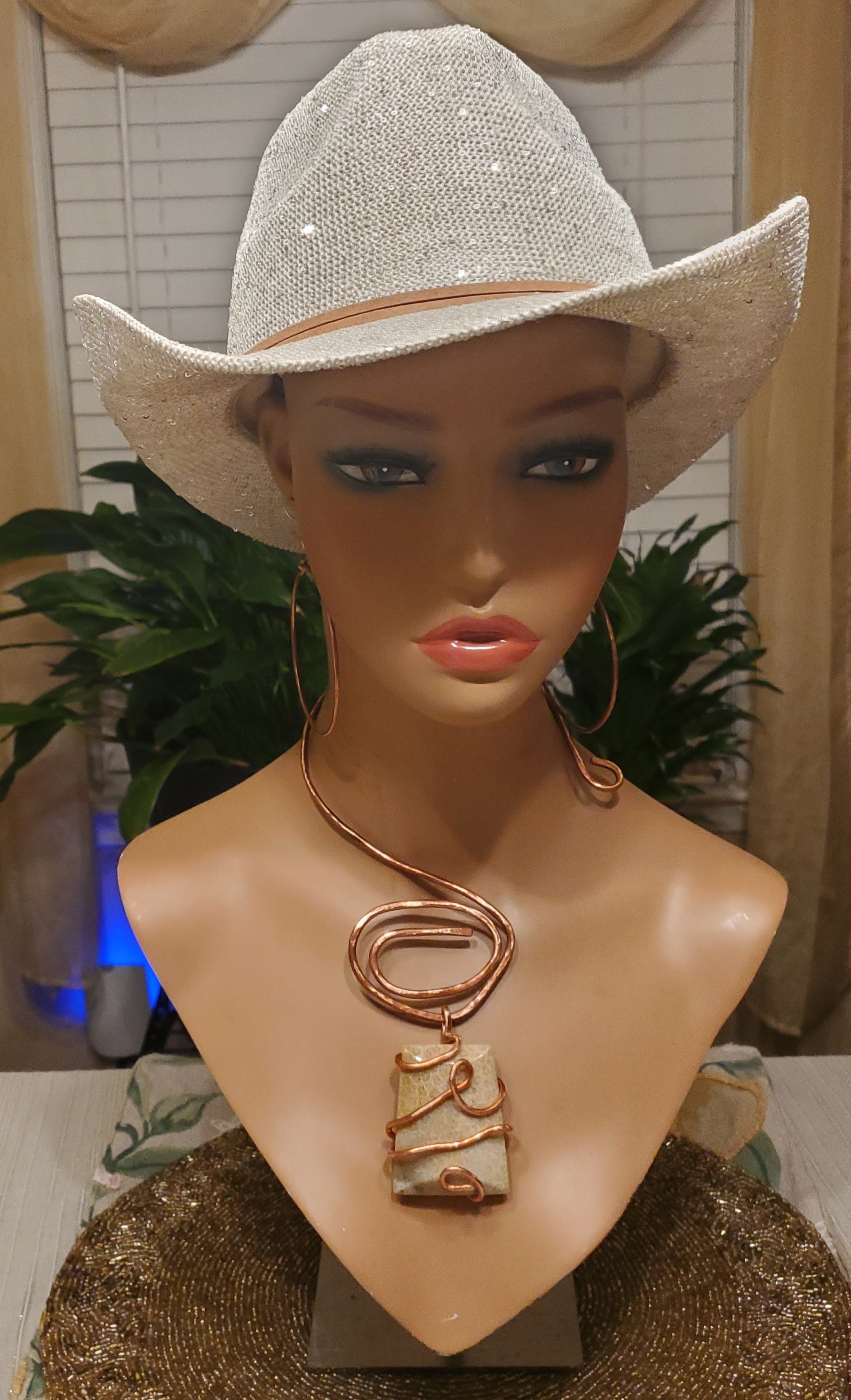 Elevate your everyday style with this striking Granite Stone Geo Copper Neck Cuff Necklace. Featuring natural granite stone paired with warm copper accents, this geometric design makes a bold statement while maintaining understated elegance. The cuff-style necklace sits perfectly at the neckline, adding dimension and visual interest to any outfit. Whether you're dressing up for an occasion or enhancing your casual wardrobe, this piece combines earthy sophistication with modern design. A versatile accessory that transforms your look and showcases your refined taste in jewelry.