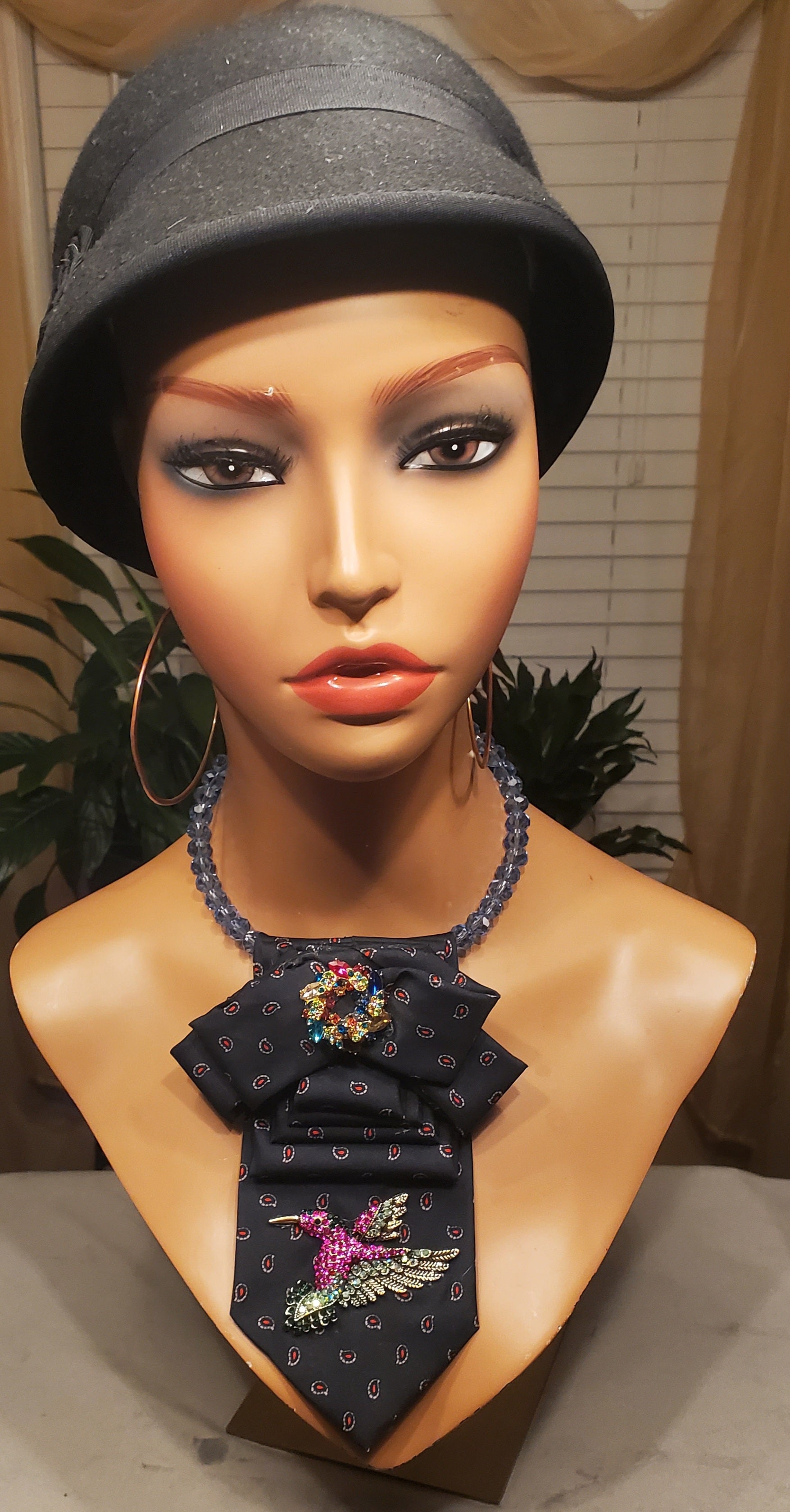 Elevate your accessory collection with this distinctive short necktie necklace, featuring a striking blue paisley double bow design paired with a charming colorful wreath and birdie pendant. The sophisticated combination of classic paisley patterns and whimsical botanical elements creates a refined yet playful statement piece. Perfect for adding personality to everyday outfits or dressing up special occasions, this versatile necklace bridges timeless elegance with contemporary flair. An ideal choice for those who appreciate unique, conversation-starting jewelry that reflects individual style.